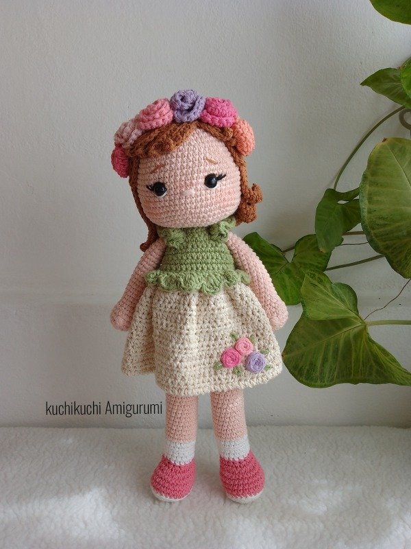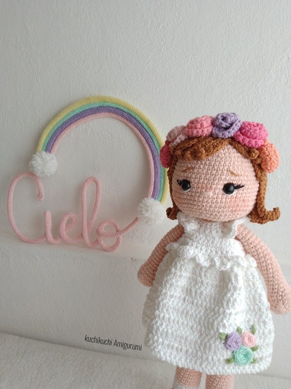 Hola!!!! Hoy te traigo un nuevo tutorial amigurumi, te presento a 🌈Cielo 🌈 una muñequita con vestido que te puedo asegurar que del color que elijas tejerlo te va quedar hermoso. Cielo está tejida en hilo de algodón medio y aguja de crochet num 2.5mm , además esta muñequita tiene su cabeza móvil es decir que gira. El PDF cuenta con muchas fotos y video del bordado de las flores. Su medida final es de 33 CM aprox. ESTE ES UN PDF TUTORIAL PARA TEJEDORAS. NO EL AMIGURUMI YA TEJIDO