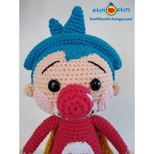 Plim Plim patrón PDF para tejer a Plim Plim. Tejido en hilo de algodón semigrueso y aguja de crochet num 2.5 mm su medida es 32 cm.